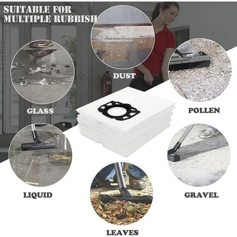 Abordable – Nous proposons 10 sacs d’aspirateur Karcher. Nous recommandons de remplacer le sac karcher wd5 tous les 2 à 3 mois. Afin que les filtres pour les performances de nettoyage Karcher soient conservés et que la pénétration de la poussière, du pollen et d’autres allergènes dans l’air respirable soit réduite.