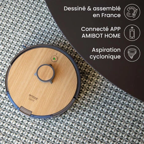 AMIBOT Spirit Origin est un robot aspirateur et laveur puissant, intelligent et performant. Il est doté d’équipements performants comme son télémètre laser, son réservoir à poussière cycloniques et son réservoir à eau vibrant qui ne laisse aucunes traces derrière lui afin de vous proposer un nettoyage des sols complets. Connecté à l’application AMIBOT HOME vous pourrez suivre votre robot partout dans la maison, mais aussi accéder à de nombreuses fonctionnalités comme le réglage d’intensité d’aspiration, le no go zones… Dessiné et assemblé en France avec 30% de sa valeur d’origine française ou européenne, il est le fruit d’une véritable démarche éco-responsable et arbore avec style un superbe revêtement en bois de chêne. Compatible assistants vocaux, vous pouvez lancer votre robot simplement grâce à votre voix « Ok Google, démarre le robot »